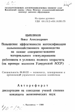 Повышение эффективности интенсификации сельскохозяйственного производства на основе совершенствования материального стимулированияработников в условиях поного хозрасчета (на примере кохозов Удмуртской АССР) тема диссертации по экономике, полный текст автореферата