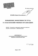 Автореферат диссертации по теме "Повышение эффективности труда в сельскохозяйственных организациях"