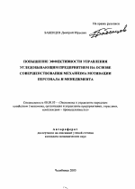 Повышение эффективности управления угледобывающим предприятием на основе совершенствования механизма мотивации персонала и менеджмента тема диссертации по экономике, полный текст автореферата