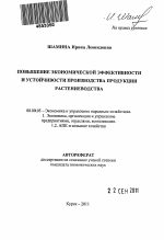 Повышение экономической эффективности и устойчивости производства продукции растениеводства тема диссертации по экономике, полный текст автореферата