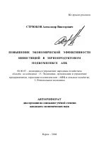 Повышение экономической эффективности инвестиций в зернопродуктовом подкомплексе АПК тема диссертации по экономике, полный текст автореферата