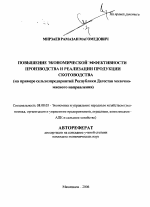Повышение экономической эффективности производства и реализации продукции скотоводства тема диссертации по экономике, полный текст автореферата