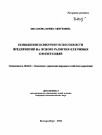 Повышение конкурентоспособности предприятий на основе развития ключевых компетенций тема диссертации по экономике, полный текст автореферата