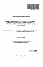 Автореферат диссертации по теме "Повышение конкурентоспособности субъектов малого и среднего предпринимательства с использованием системы сбалансированных показателей"