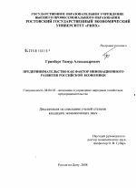 Предпринимательство как фактор инновационного развития российской экономики тема диссертации по экономике, полный текст автореферата