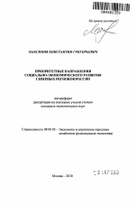 Приоритетные направления социально-экономического развития северных регионов России тема диссертации по экономике, полный текст автореферата