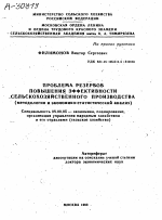 проблема резервов повышения эффективности .сельскохозяйственного производства