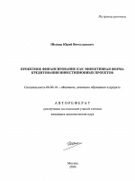 Проектное финансирование как эффективная форма кредитования инвестиционных проектов тема диссертации по экономике, полный текст автореферата