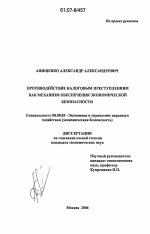 Противодействие налоговым преступлениям как механизм обеспечения экономической безопасности тема диссертации по экономике, полный текст автореферата