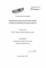 Автореферат диссертации по теме "Процентная ставка как инструмент оценки стоимости и доходности на рынке капитала"