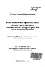 Пути повышения эффективности механизма реализации экономических ресурсов региона тема диссертации по экономике, полный текст автореферата