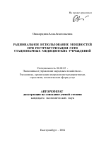 Рациональное использование мощностей при реструктуризации сети стационарных медицинских учреждений тема диссертации по экономике, полный текст автореферата