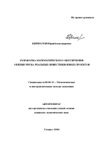 Автореферат диссертации по теме "Разработка математического обеспечения оценки риска реальных инвестиционных проектов"