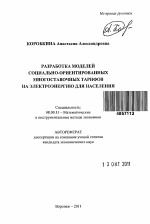 Разработка моделей социально-ориентированных многоставочных тарифов на электроэнергию для населения тема диссертации по экономике, полный текст автореферата