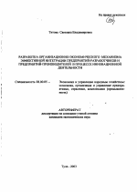 Разработка организационно-экономического механизма эффективной интеграции предприятий-разработчиков и предприятий-производителей в процессе инновационной деятельности тема диссертации по экономике, полный текст автореферата