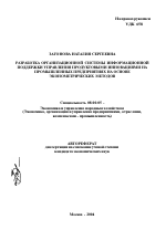 Разработка организационной системы информационной поддержки управления продуктовыми инновациями на промышленных предприятиях на основе эконометрических методов тема диссертации по экономике, полный текст автореферата