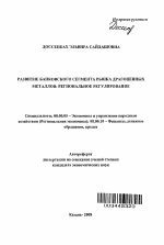 Автореферат диссертации по теме "Развитие банковского сегмента рынка драгоценных металов: региональное регулирование"