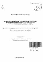 Развитие демографического потенциала региона на основе совершенствования управления сферой физической культуры и спорта тема диссертации по экономике, полный текст автореферата