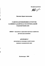 Развитие дорожной инфраструктуры Калининградской области в региональной транспортной сети тема диссертации по экономике, полный текст автореферата