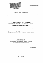 Развитие форм реализации муниципальной собственности в современных условиях тема диссертации по экономике, полный текст автореферата