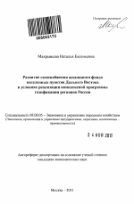 Развитие газоснабжения жилищного фонда населенных пунктов Дальнего Востока в условиях реализации комплексной программы газификации регионов России тема диссертации по экономике, полный текст автореферата