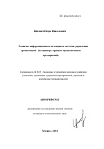 Развитие информационного потенциала системы управления организацией тема диссертации по экономике, полный текст автореферата