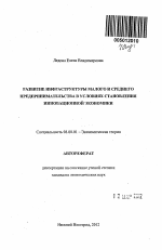 Развитие инфраструктуры малого и среднего предпринимательства в условиях становления инновационной экономики тема диссертации по экономике, полный текст автореферата