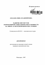 Развитие институтов корпоративной социальной ответственности на микро- и мезоэкономических уровнях тема диссертации по экономике, полный текст автореферата