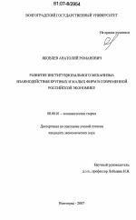 Развитие институционального механизма взаимодействия крупных и малых фирм в современной российской экономике тема диссертации по экономике, полный текст автореферата