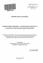 Развитие инвестиционно-строительного комплекса как подсистемы региональной экономики тема диссертации по экономике, полный текст автореферата