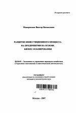 Развитие инвестиционного процесса на предприятии на основе бизнес-планирования тема диссертации по экономике, полный текст автореферата