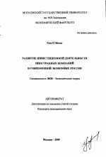 Развитие инвестиционной деятельности иностранных компаний в современной экономике России тема диссертации по экономике, полный текст автореферата