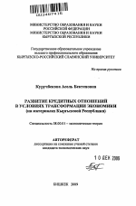 РАЗВИТИЕ КРЕДИТНЫХ ОТНОШЕНИЙ В УСЛОВИЯХ ТРАНСФОРМАЦИИ ЭКОНОМИКИ (на материалах Кыргызской Республики)