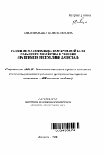 РАЗВИТИЕ МАТЕРИАЛЬНО-ТЕХНИЧЕСКОИ БАЗЫ СЕЛЬСКОГО ХОЗЯЙСТВА В РЕГИОНЕ (НА ПРИМЕРЕ РЕСПУБЛИКИ ДАГЕСТАН)