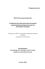Развитие механизмов обеспечения экономической безопасности крупных городов тема диссертации по экономике, полный текст автореферата
