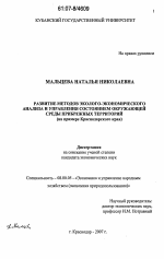 РАЗВИТИЕ МЕТОДОВ ЭКОЛ01 О-ЖО НОМ И Ч ЕС КОГО АНАЛИЗА И УПРАВЛЕНИЯ СОСТОЯНИЕМ ОКРУЖАЮЩЕЙ СРЕДЫ ПРНЬРЕЖНЫХ ТЕРРИТОРИЙ (на примере Краснодарского кран)