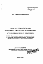 Развитие межотраслевых экономических отношений в системе агропромышленного комплекса тема диссертации по экономике, полный текст автореферата