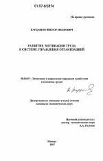 Развитие мотивации труда в системе управления организацией тема диссертации по экономике, полный текст автореферата