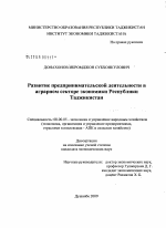 Развитие предпринимательской деятельности в аграрном секторе экономики Республики Таджикистан тема диссертации по экономике, полный текст автореферата