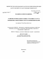Развитие регионального рынка страховых услуг и повышение эффективности его функционирования тема диссертации по экономике, полный текст автореферата