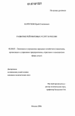 Развитие рейтинговых услуг в России тема диссертации по экономике, полный текст автореферата