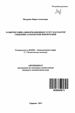 Автореферат диссертации по теме "Развитие рынка информационных услуг как фактор снижения асимметрии информации"