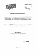 Развитие системы продовольственного обеспечения населения в условиях модернизации экономики тема диссертации по экономике, полный текст автореферата