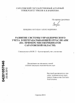 Развитие системы управленческого учета в перерабатывающей отрасли АПК тема диссертации по экономике, полный текст автореферата