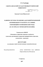 РАЗВИТИЕ СИСТЕМЫ УПРАВЛЕНИЯ АДАПТАЦИЕЙ ПРЕДПРИЯТИЙ АВТОМОБИЛЬНОГО ТРАНСПОРТА В УСЛОВИЯХ ИЗМЕНЯЮЩЕЙСЯ ЭКОНОМИЧЕСКОЙ СРЕДЫ (НА МАТЕРИАЛАХ ЧЕЧЕНСКОЙ РЕСПУБЛИКИ)