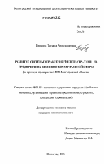 Развитие системы управления энергозатратами на предприятиях жилищно-коммунальной сферы тема диссертации по экономике, полный текст автореферата