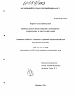 Региональная инвестиционная политика: содержание и инструментарий тема диссертации по экономике, полный текст автореферата