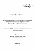 Региональные особенности финансового оздоровления предприятий агропромышленного комплекса (на примере Республики Татарстан)
