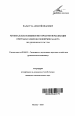 Региональные особенности разработки и реализации программ развития и поддержки малого предпринимательства тема диссертации по экономике, полный текст автореферата