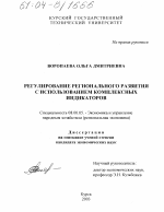 Регулирование регионального развития с использованием комплексных индикаторов тема диссертации по экономике, полный текст автореферата